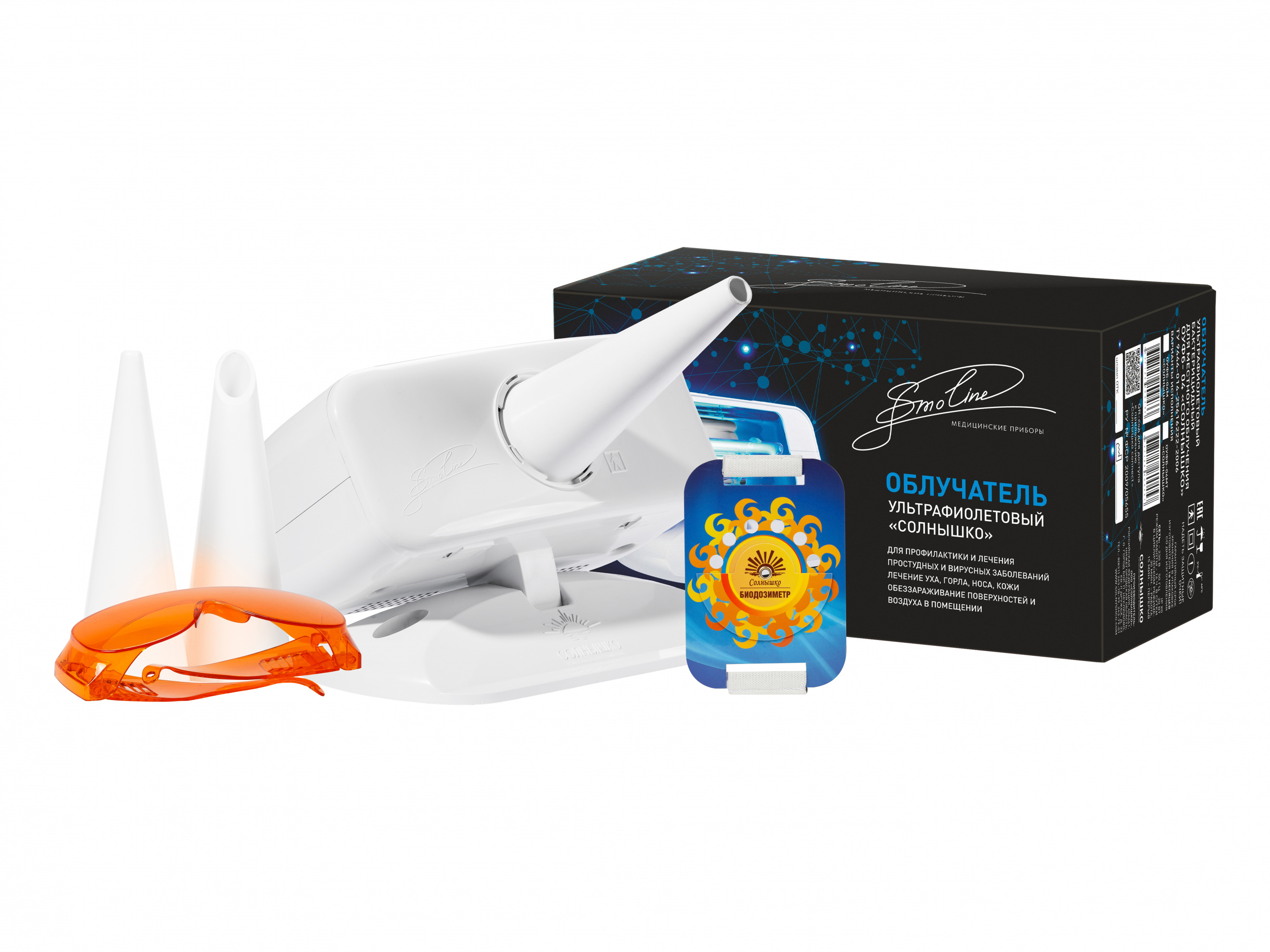 Облучатель ультрафиолетовый бактерицидный для местного облучения ОУФб-04МТ «Солнышко» в конструктивно улучшенном корпусе предназначен для общих и внутриполостных облучений в эффективном спектральном диапазоне излучения 180–275 нм (УФС – диапазон) при воспалительных заболеваниях в отоларингологии, хирургии, для обработки предметов бытового и медицинского назначения в лечебных, лечебнопрофилактических, санаторно-курортных учреждениях, а также в домашних условиях.